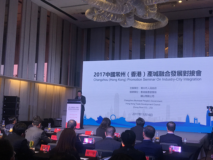 当天下午,黄董事长出席了在香港W酒店举办的“2017中国常州(香港)产城融合发展对接会”。这次钟山公司连续第12年协办常州市活动。张涛副总裁出席“中国常州(香港)境外融资推介会”。我司还承办了“武进(香港)旅游推介招商会”。